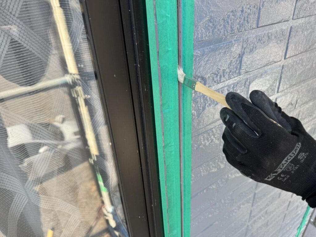 J様邸は外壁が2色仕様となるため、シーリングも2色に分けて施工しました。実はここが、職人の腕の見せどころです。