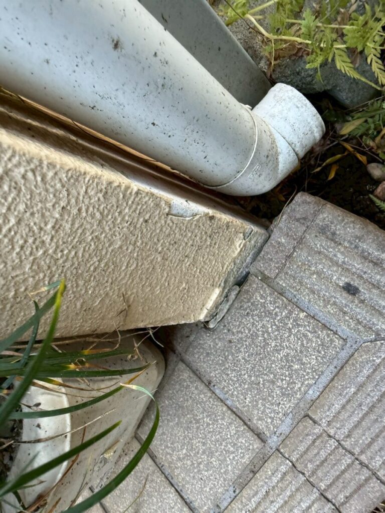 外壁にはチョーキング現象(白い粉が付く状態)が見られ、塗膜の防水性能が低下している状態でした。