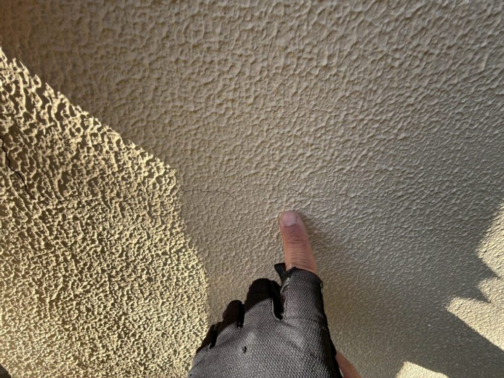 外壁にはチョーキング現象(白い粉が付く状態)が見られ、塗膜の防水性能が低下している状態でした。