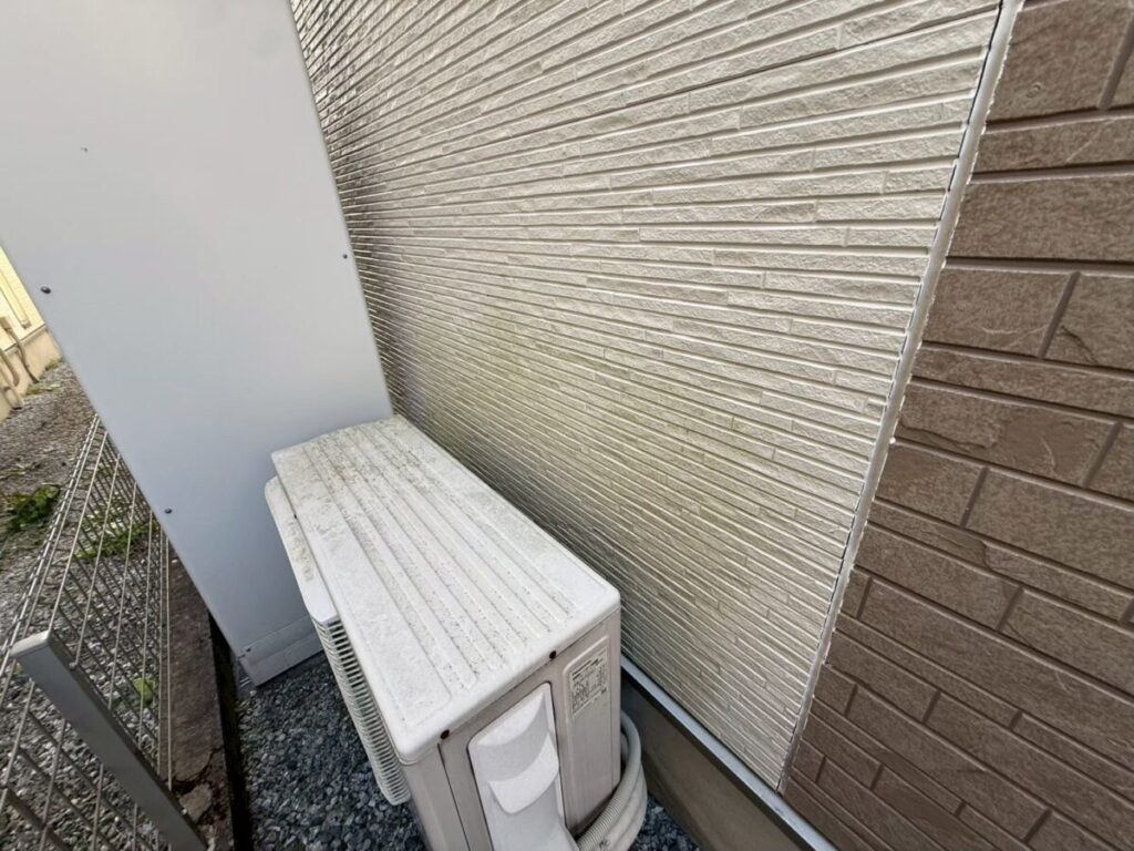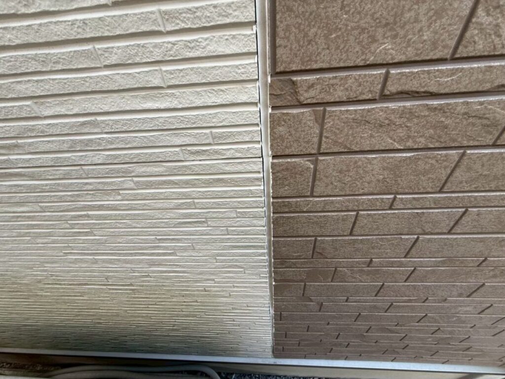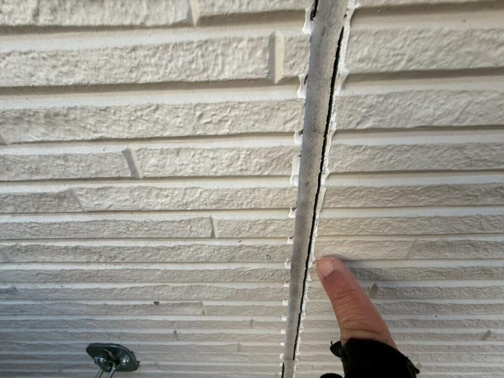 現地調査では、外壁の継ぎ目に施工されているシーリングの状態も入念に確認しました。シーリングは建物の防水性と気密性を保つ重要な役割を担っていますが、紫外線や雨風の影響で徐々に硬化やひび割れ、剥離が発生します。この劣化を放置すると、隙間から雨水が侵入し外壁内部の腐食や雨漏りの原因になる可能性があります。そのため塗装工事の際には、既存シーリングの打ち替えや増し打ちを適切に行い、防水性能をしっかり回復させることが大切です。下地から整えることで塗膜の耐久性も向上し、建物全体を長期間守ることにつながります。