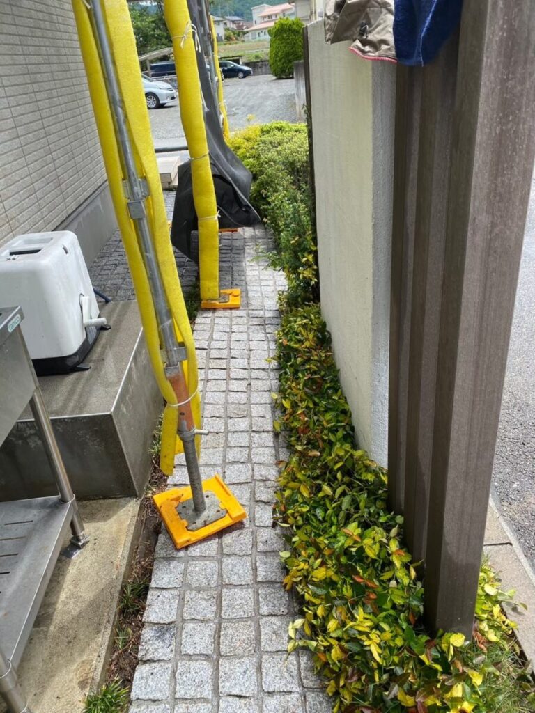 足場を設置して高圧洗浄を本日行いました。(*^^)v