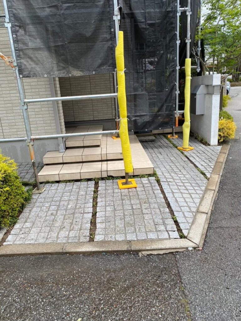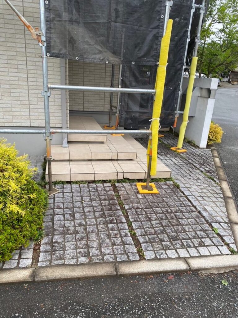 お打ち合わせの際、玄関前のインターロッキングをすごく気になされていてここも洗浄してくれますか~と言われました。お見積もりの中にサービスで入れていますのでご安心くださいと。洗浄の日は大体、一日かけて洗っていくので、サッシ廻りや身の回りの箇所バイオ洗浄で洗っていきます。大喜び頂き、今回外壁がきれいになるのにここだけ苔が生えたりしてるのが気になって自身でするにも機械もないし、、、