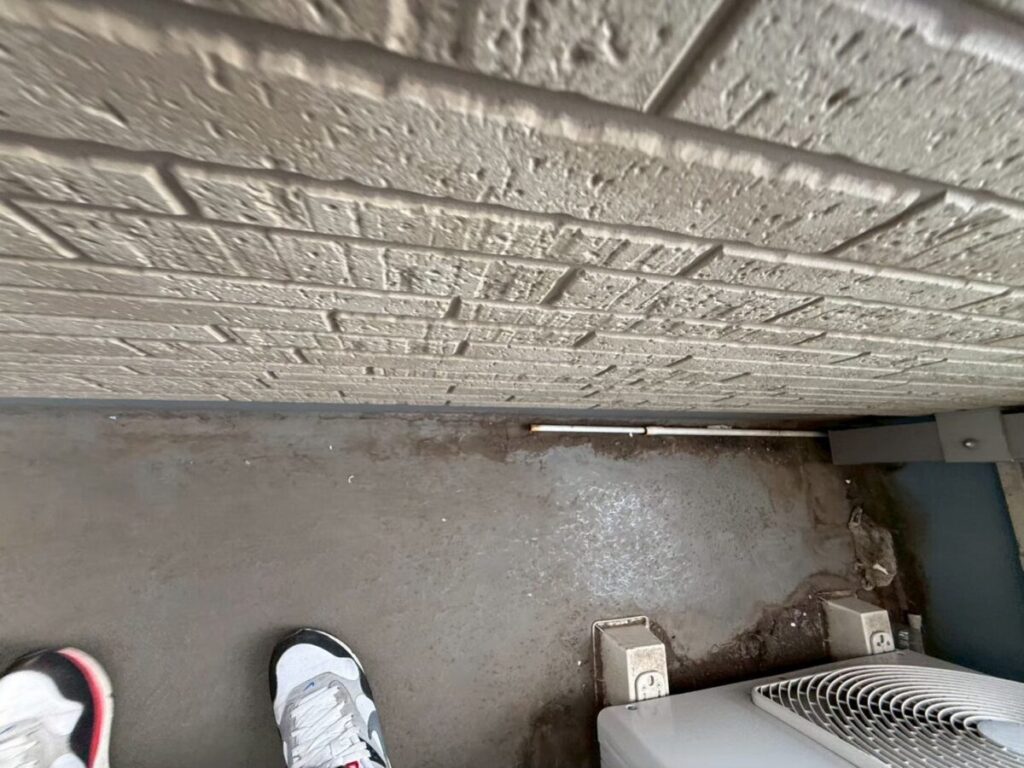 ベランダ部分も確認しています。外壁はなかなかお客様の中で見る機会が少ない中で、ベランダは布団を干したり洗濯物を干したりと利用する機会が多いですよね?なので多くのお客様はベランダを特に気になされている傾向があります。ベランダ床の種類により施工方法が異なりますが、基本的に使われているのがグレー色のFRP防水だと思います。