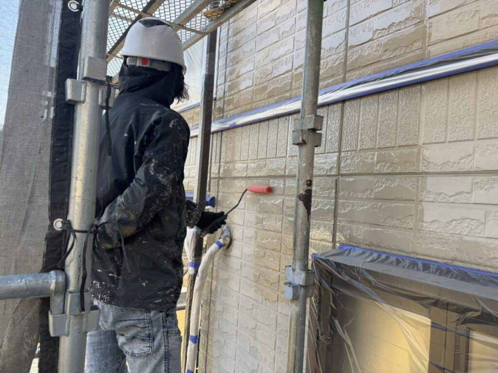 外壁塗装下塗り作業 乾燥後にしっかりと行いました。