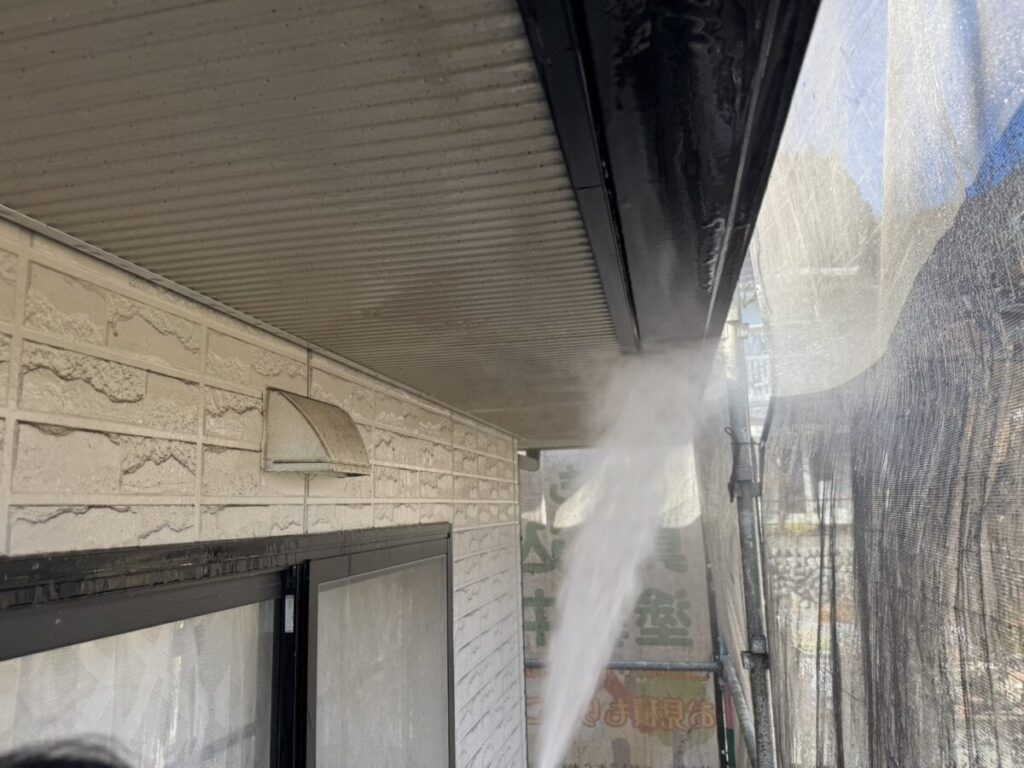 J様のご自宅は築年数的にちょうど塗装の時期でした。汚れをしっかり洗い流して塗装の下準備。
