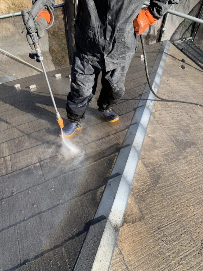高圧洗浄では、バイオ洗浄を使用して外壁や屋根建物の汚れをきれいにしました。