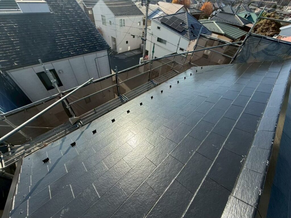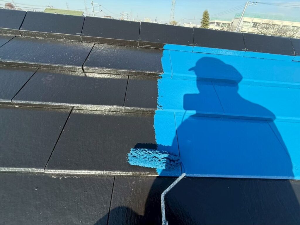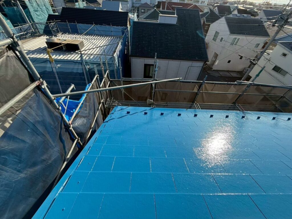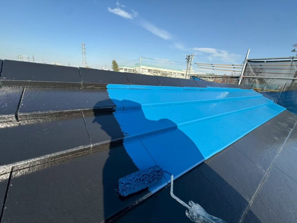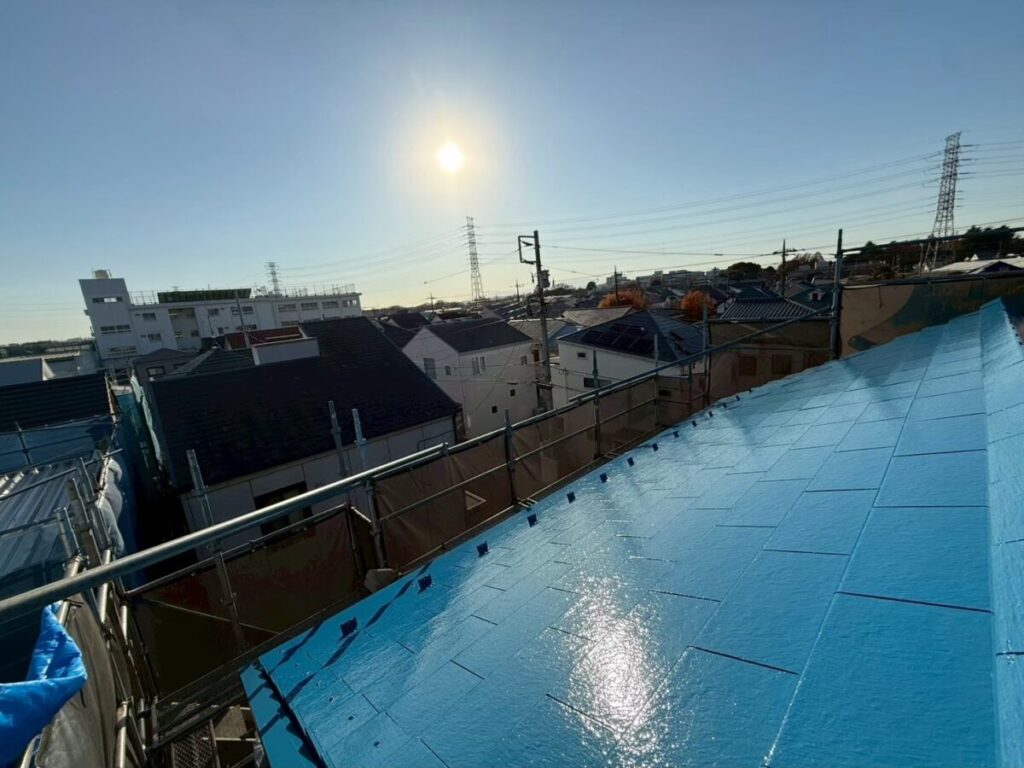 そこから、下塗り➡︎中塗り➡︎上塗りと行います。この後屋根の基材によって作業工程を適切な方法で行います。